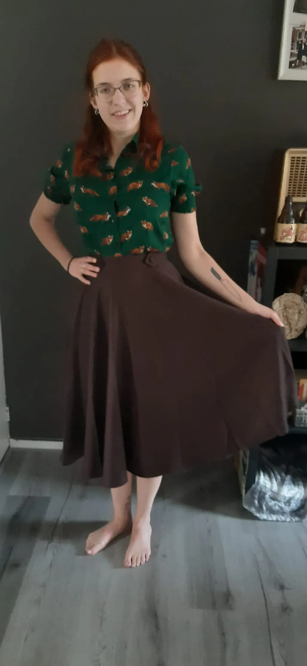 Zelf had ik al de oranje foxy jurk gekocht vorig jaar en nu zag ik dat je er ook een blouse variant van heb. Deze keer heb ik gekozen voor de groene versie. Het stofje is lekker zacht en luchtig. Maat valt ook zoals maattabel. En is ook leuk te combineren met de bruine didi 40's swing rok zoals te zien op de foto😄😉.