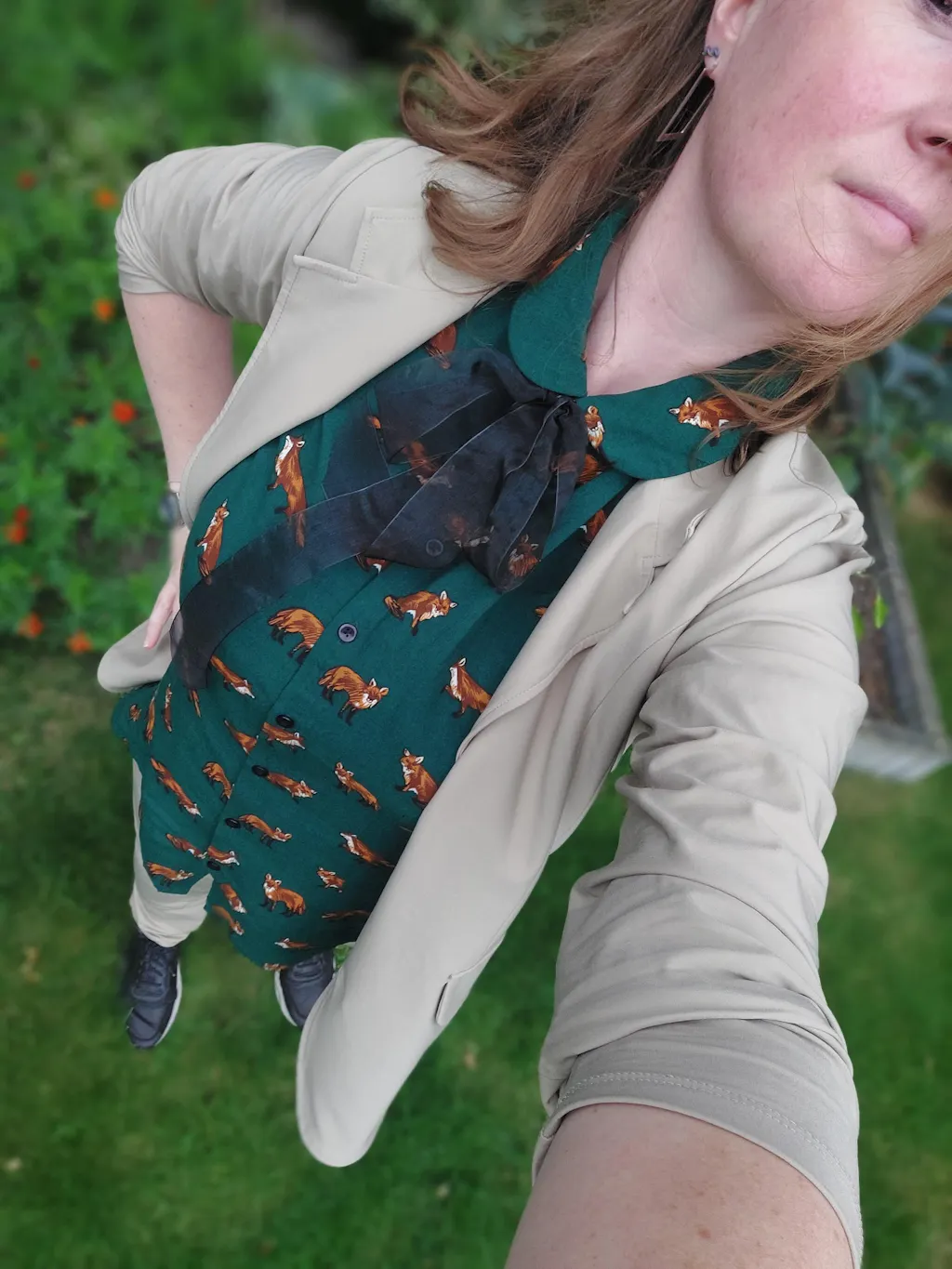 De kleuren zijn mooi, het stofje is fijn. Hij valt wat wijd rond de armen, maar verder mooi model. Ik krijg er veel leuke reacties op. Hij is op allerlei manieren te dragen, zonder strik, met een paar knoopjes open, of juist hoog dicht met strik onder een net pak voor een speels effect.