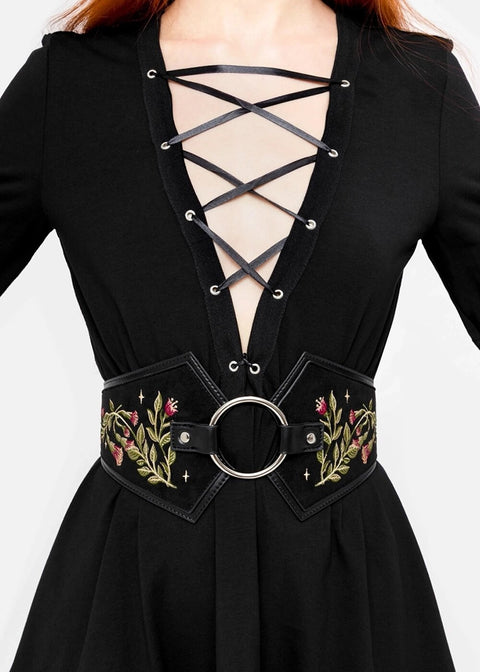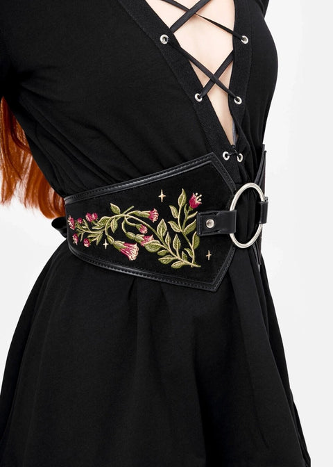 Leder du efter smukke nye accessories til dine dark cottage-core outfits, og elsker du udsmykkede broderier? Restyle leverer med et smukt design i denne ringbælte, der kan bindes bagpå, for at sikre den perfekte pasform. Opgrader dine looks på ingen tid!