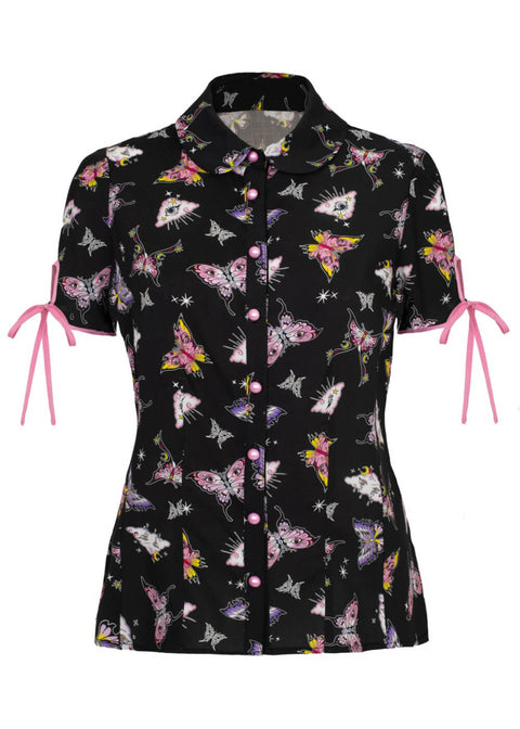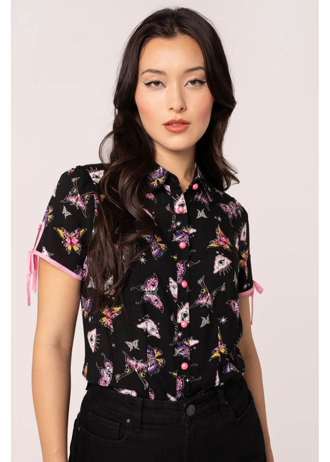 Die Blusen von Succubus.de sind nicht nur stilvoll, sondern auch vielseitig kombinierbar. Trage eine unserer Blusen mit einer schicken Hose für einen eleganten Look oder kombiniere sie mit einem Rock, um einen echten Retro-Look zu schaffen. Ergänze dein Outfit mit passenden Schuhen und Accessoires, um deinen Stil zu perfektionieren. Unsere Blusen sind so gestaltet, dass sie dir in jeder Situation schmeicheln, egal ob du dich für einen lässigen oder eleganten Look entscheidest.