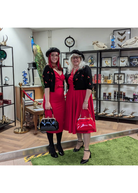 Kein Outfit ist komplett ohne die richtigen Accessoires. Bei Succubus.nl finden Sie eine wunderschöne Auswahl an Taschen, Schmuck, Hüten und mehr, die alle von Vintage-Stilen inspiriert sind. Fügen Sie Ihrem Look einen Hauch von Glamour hinzu mit einer auffälligen Halskette oder vervollständigen Sie Ihr Outfit mit einer eleganten Retro-Handtasche.