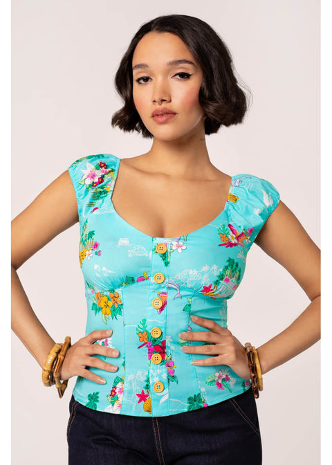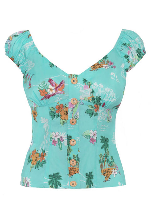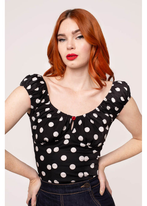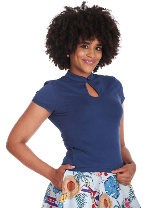 Unsere Tops lassen sich leicht mit verschiedenen Kleidungsstücken kombinieren, sodass Ihnen endlose Möglichkeiten zur Verfügung stehen, um Ihr Outfit zusammenzustellen. Tragen Sie ein blumiges Top mit einem Retro-Rock für einen romantischen Look oder wählen Sie ein Polka Dot Top und kombinieren Sie es mit eleganten Hosen für eine moderne Note. Fügen Sie ein Paar Retro-Schuhe und auffällige Accessoires hinzu, um Ihren Look zu vervollständigen.