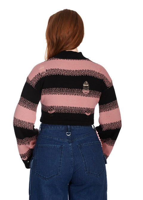 Banned Alternative Candyfloss Distressed Pulli Rosa Schwarz