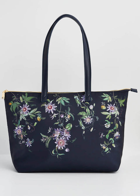Verirre dich zwischen den Passionsblumen... Diese Umhängetasche ist mit einer Breite von 42 cm wunderbar geräumig: genug Platz für deine Abenteuer! Ob zur Arbeit oder beim Spaziergang im Wald - wohin nimmst du dieses Schmuckstück zuerst mit?