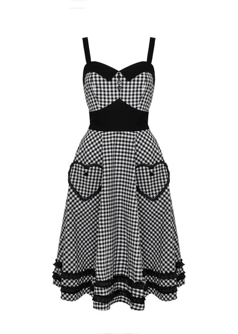 Hell Bunny Mel Gingham 60's Swing Kleid Schwarz Weiß