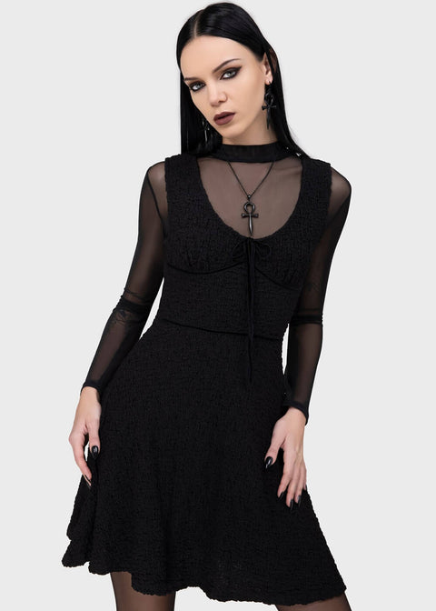 Keine ghoulische Garderobe sollte ohne das perfekte LBD auskommen, und mit Enchanted Fang hast du es gefunden! Ganz sicher nicht basic dank des besonderen Crinkle-Stoffs und trotzdem so vielseitig, dass du es in all deinen neuen Lieblingslooks integrieren kannst. Ein absolutes Must-have für jede Goth Girl!