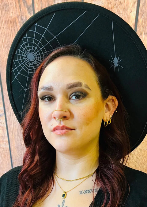 Witchwood Hanging Spider Web XL Brim Vegan Tühlte Hut Schwarz Grau