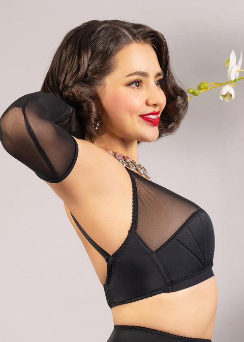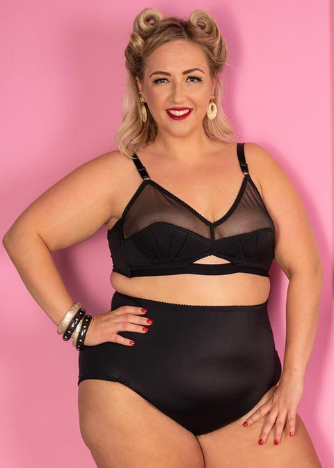 Siéntete como una verdadera femme fatale con el sujetador Liz, cuya copa en forma de concha y parte superior de malla son simplemente fascinantes... Liz es un homenaje a la lencería vintage, ofreciendo un diseño refinado que realza maravillosamente tu escote. ¡Un imprescindible para toda Pin-Up que desee abrazar a su diva interior!