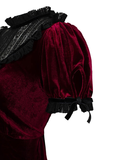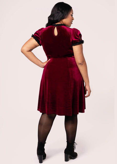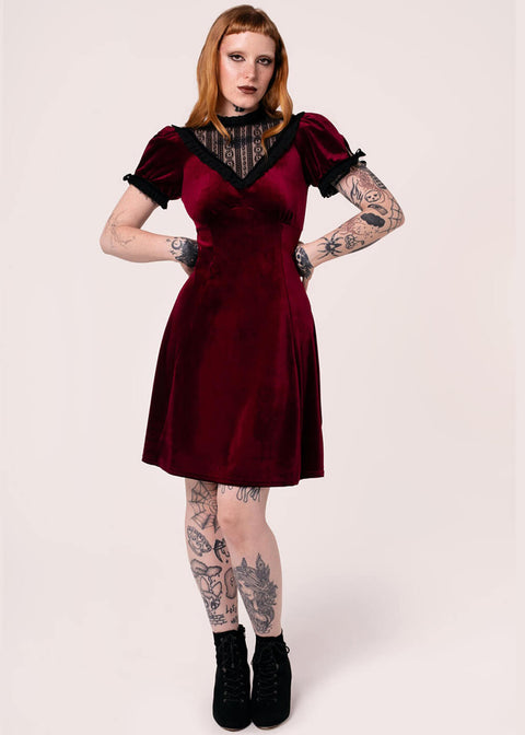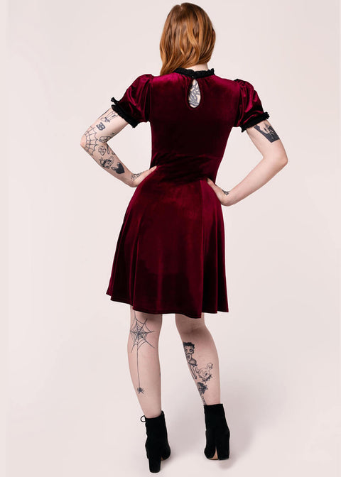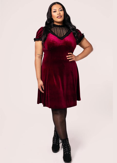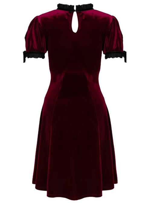 Hell Bunny Mourning Velvet 60-luvun Mini Mekko Burgundin Värissä
