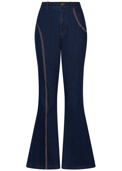 Succubus Clothing Rainbow Denim 70's Flare-farkut - Navy