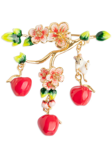 Bill Skinner Broche Pomme et Souris Fleurie