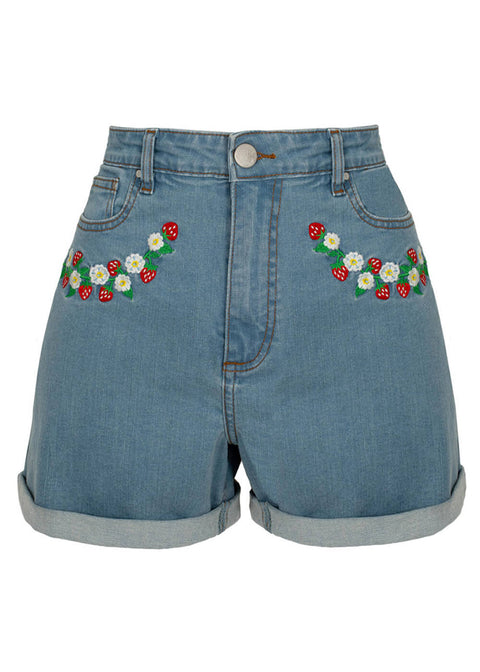Hell Bunny Francoise Short Fraise - Denim Bleu