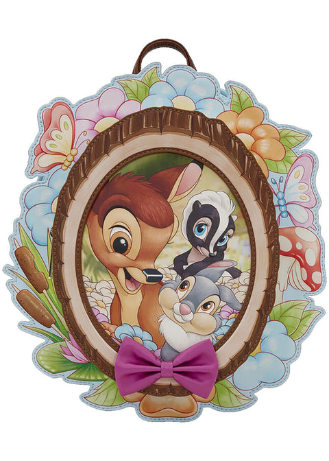 Ce sac à dos présente un joli cadre cameo avec Bambi, Pan-Pan et Fleur au centre, entourés de fleurs et de papillons. Le détail du nœud en bas ajoute une touche de douceur, et le motif floral discret du matériau révèle sans cesse de nouveaux détails.