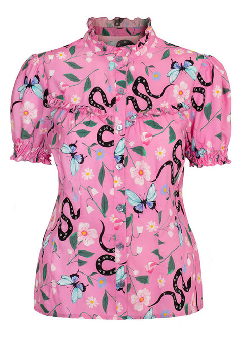 Hell Bunny Ma Boheme Snake 60's Blouse Roze