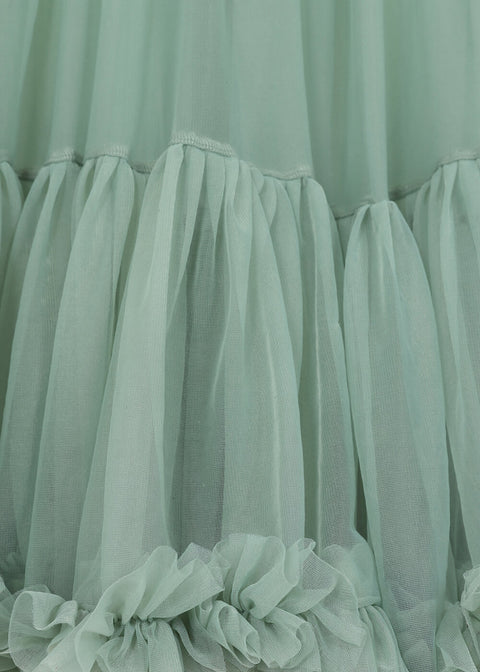 Deze bijzonder knuffelbare petticoats bestaan uit twee lagen zacht 2-baans chiffon die allebei een vrolijk gerimpeld randje hebben voor nóg meer volume. Daaronder zit een kortere onderrok, zodat ze niet aan je panty blijft plakken.