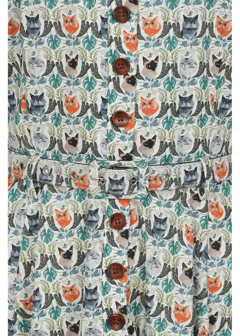 You can already hear Bella meowing: I’m your new favorite! It’s absolutely true, because who can resist so many kittens... Her fit is dreamy too, thanks to the princess seams in the bodice and the flattering matching belt, featuring the same print. No hassle with zippers, as you simply open and close her with the wooden buttons at the front. 100% convenience, 100% style!