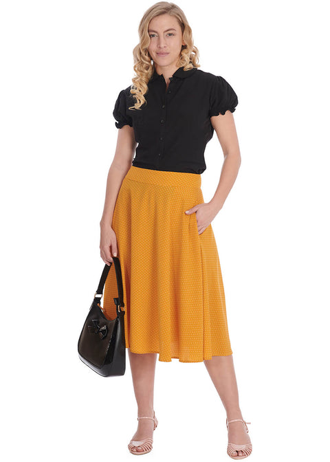 She is made of airy 100% viscose without stretch for a classic vintage look. With waist pants or skirt you can create an unforgettable look in an instant.