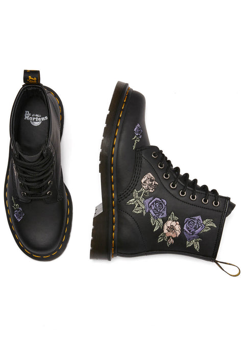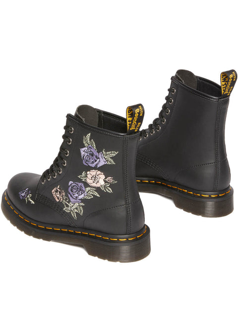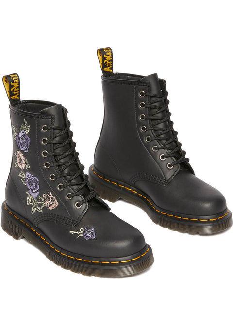 The roses on the Vonda are just as iconic as the 1460 boots they are embroidered on. The unmistakable Dr. Martens DNA is clear: from the high-quality genuine leather to the yellow stitching and 8 eyelets. Whether worn with trousers or a 50's swing dress, dancing to Rock 'n Roll or heading to the office, you and your Docs can take on the world!