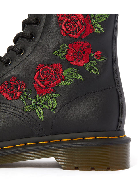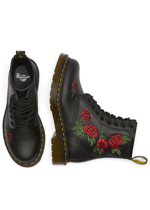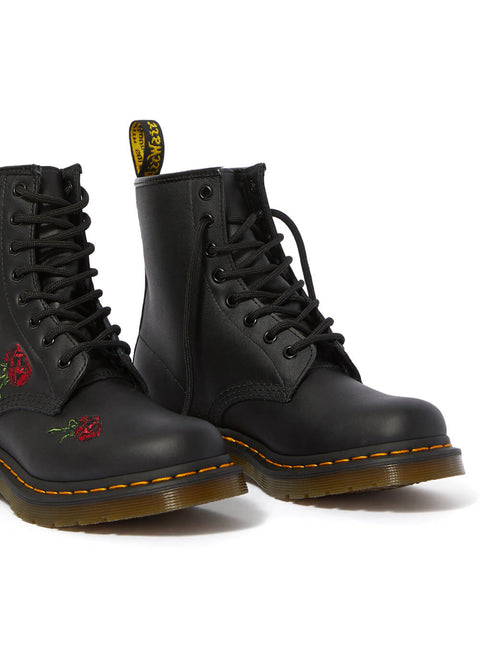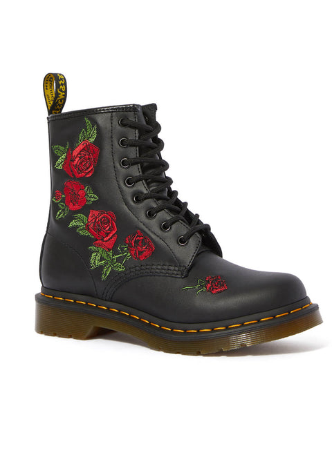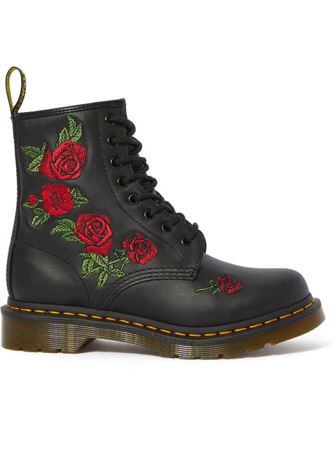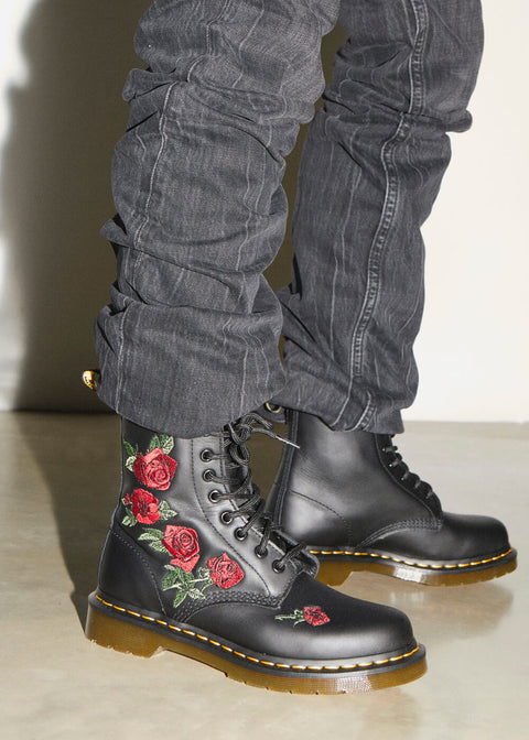 The roses on the Vonda are as iconic as the 1460 boots they are embroidered on. The unmistakable Dr. Martens DNA is evident throughout: from the high-quality genuine leather to the vibrant yellow stitching and 8 eyelets. Whether paired with trousers or a 50's swing dress, dancing to Rock 'n Roll or heading to the office, you and your Docs can take on the world!