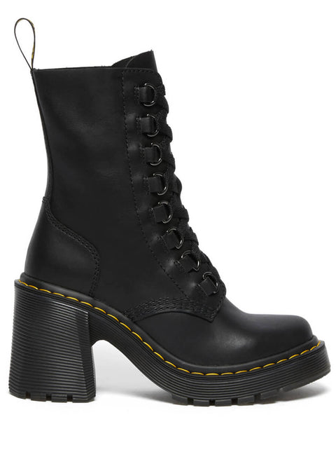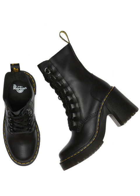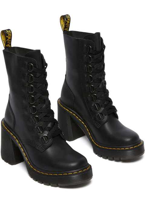 Did you know that heels can have so much attitude? With the sturdy block heels measuring 8.5 cm, Chesney takes you to new heights, while the rugged tread on the classic Dr. Martens soles keeps you firmly grounded. With Chesney, you step into the world confidently, whether it's ready or not!