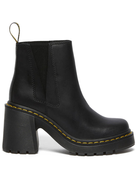 Did you know that heels can have so much attitude? With the sturdy 8 cm block heels of the Spence, you’ll soar to new heights, while the rugged tread on the classic Dr. Martens soles keeps you grounded. The elastic insert of this Chelsea model is very practical, and the soft Sendal Nappa leather makes them wonderfully comfortable to wear. With Spence, you’ll stride confidently into the world, ready or not!