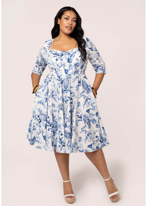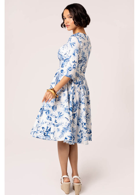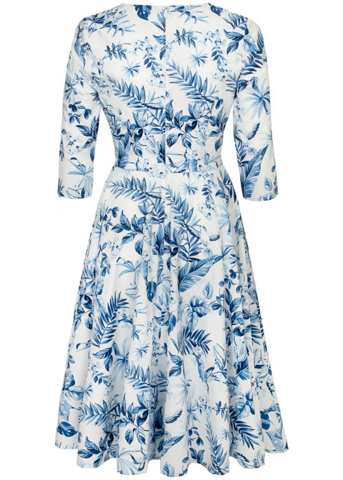 Hell Bunny Adeline Leaves 50's Swing Dress Blue