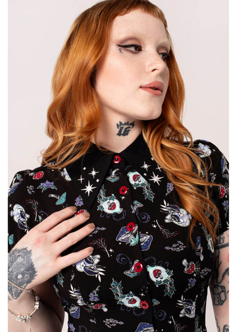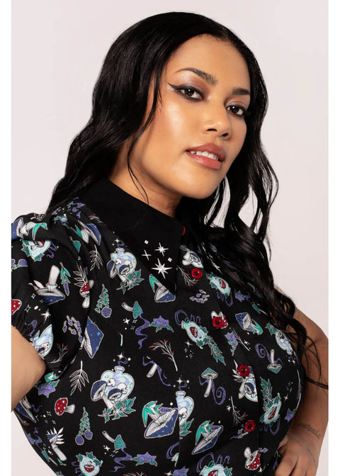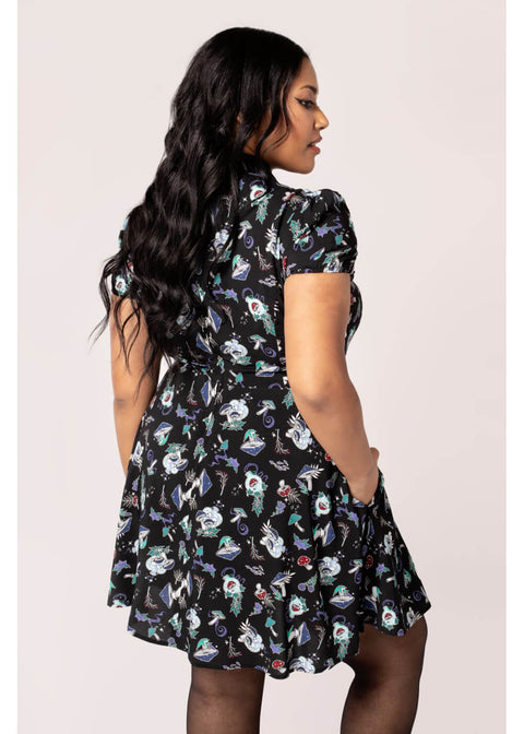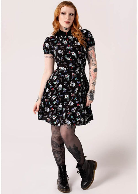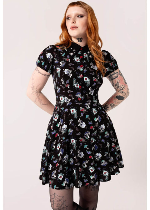 Hell Bunny Amanita Mushroom 60's Short Dress Black