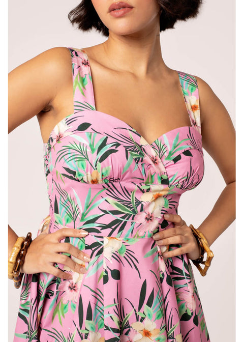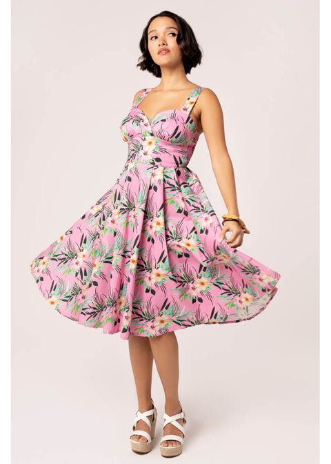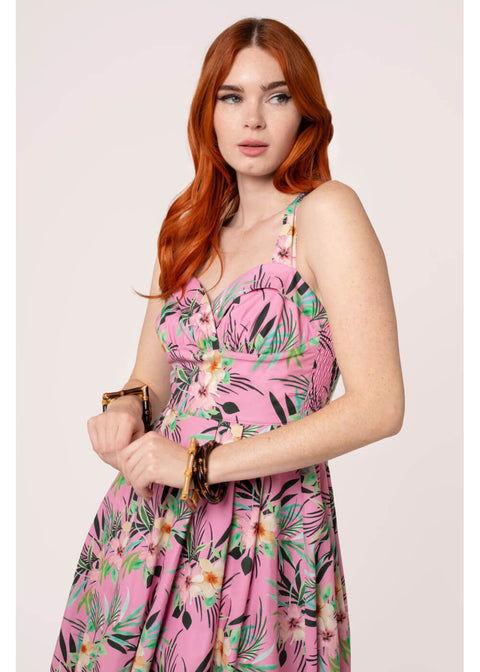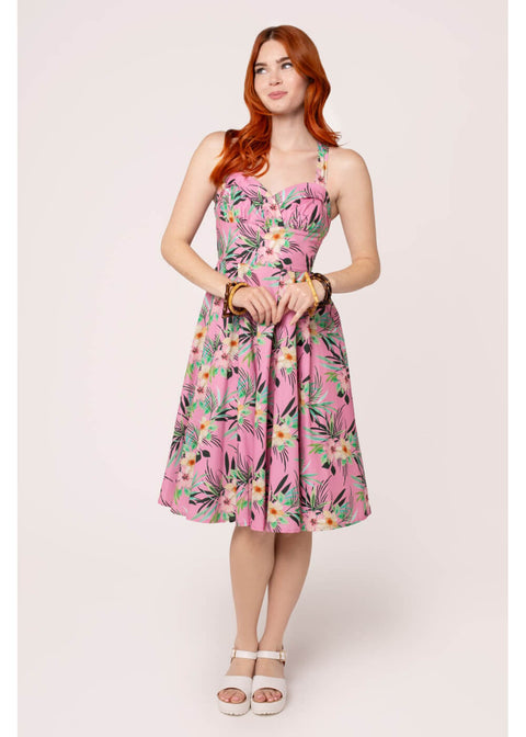 Hell Bunny Cabana Tiki 50's Swing Dress Pink