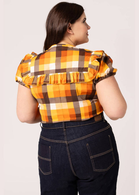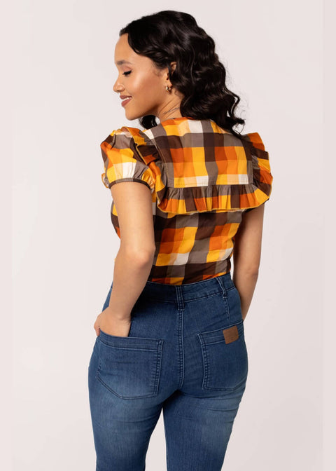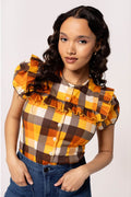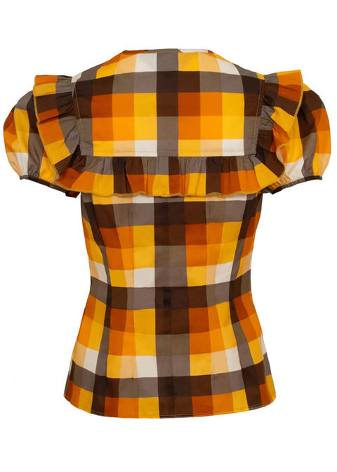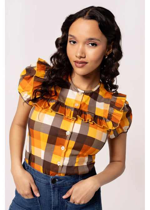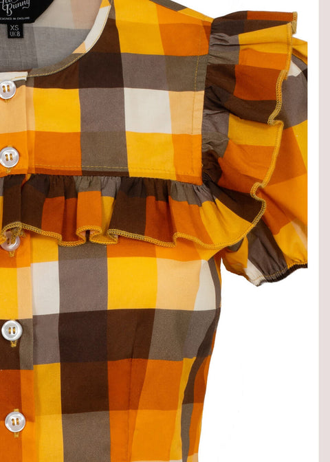 Darlene embodies, no, shouts "autumn" with her mix of earthy tones, perfect for the fall sunshine! Hell Bunny has infused all her sections with color, and as a bonus, there's a cheerful pleated square hem that will surely make you the Queen of the Corn. Trick or Treat!
