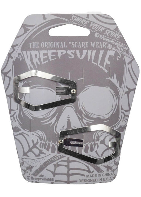 We all know it; hair getting in the way when you're brewing your favourite potion or trying to cuddle your black cats. Luckily, Kreepsville has found the perfect solution for that! These hair clips in the shape of small coffins clip easily into your hair. They keep your hairstyle in place and give your outfit a glow-up. A must-have!