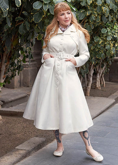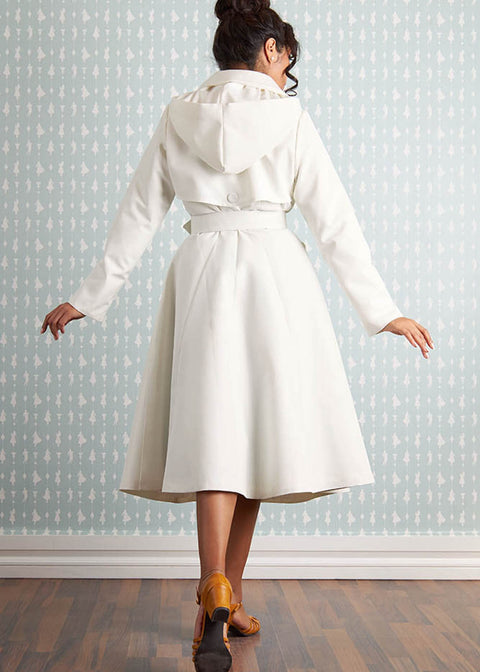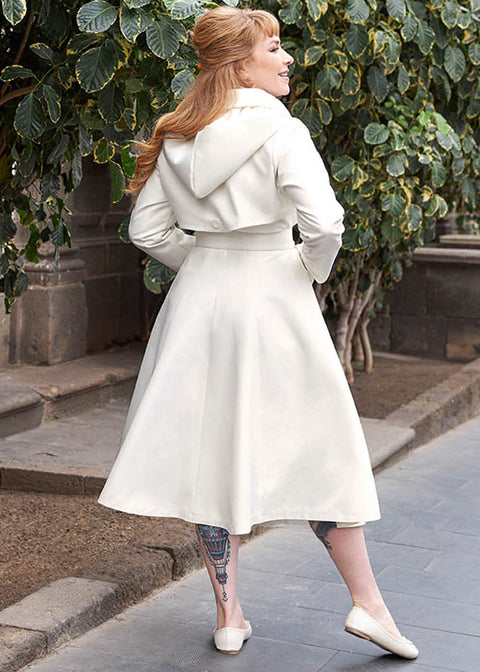 Beneath the stylish collar lies the detachable hood. Even without a downpour, you’ll want to enjoy this beauty, featuring long bishop sleeves and a waist cinched by the belt for that quintessential 50s look! A true gem among coats, have you already ordered yours?