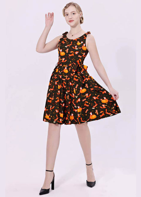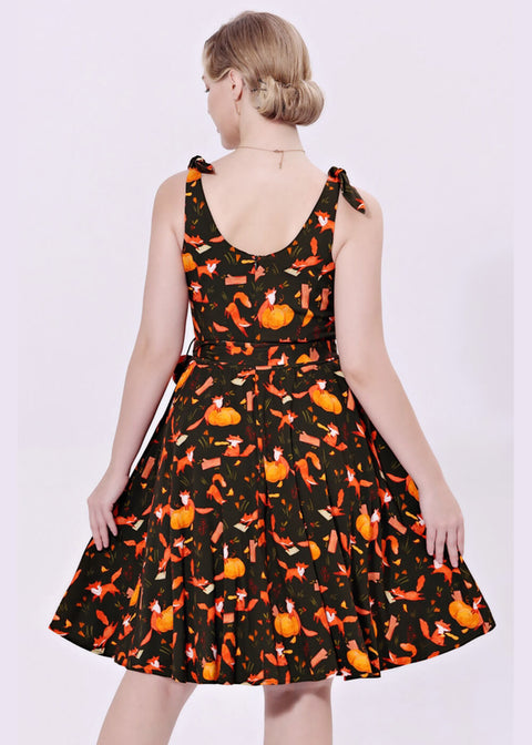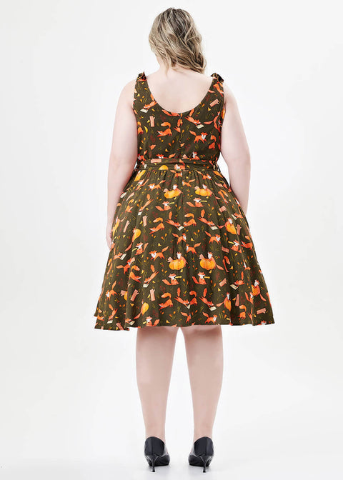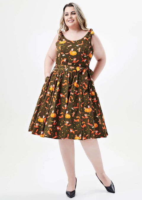 Miss Lulo Bri Autumn Foxes 50's Swing Dress Grey