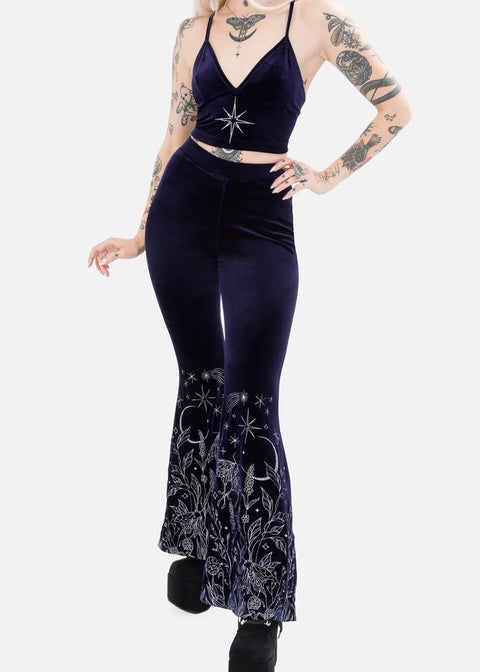 Restyle Cosmic Divinity Velvet Flares Trousers Darkblue