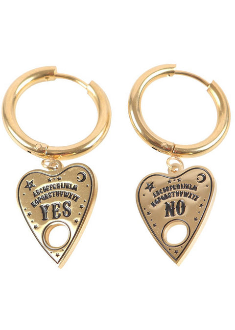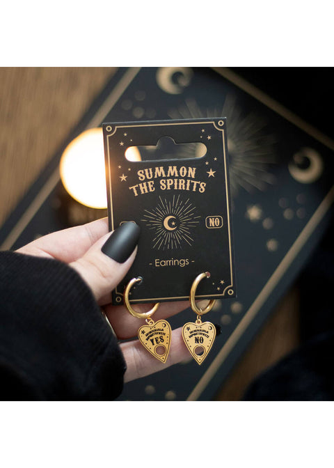 For a long time, Ouija boards have been used to communicate with the spirits and souls of the deceased, as well as other supernatural beings. These earrings are uniquely inspired by the well-known planchette that helps your new (or old) conversational partner glide over the letters on the board. The gold charm is beautifully engraved for an extra touch of detail. F-A-N-T-A-S-T-I-C!