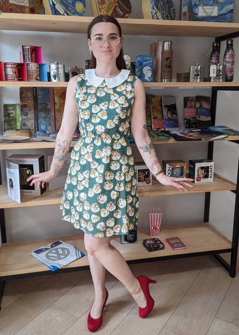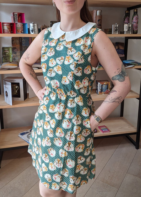 From its forest green colour to the playful polka dots and of course the faces of Chip 'n Dale all over the dress; this masterpiece from Tulip B simply must come home with you! It is made of a lightweight cotton and features a classic white collar. It is guaranteed to become your new favourite summer outfit!